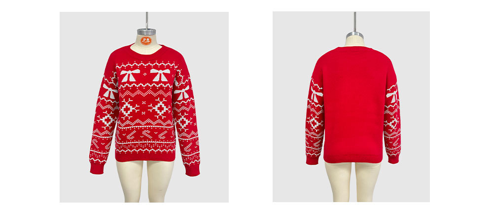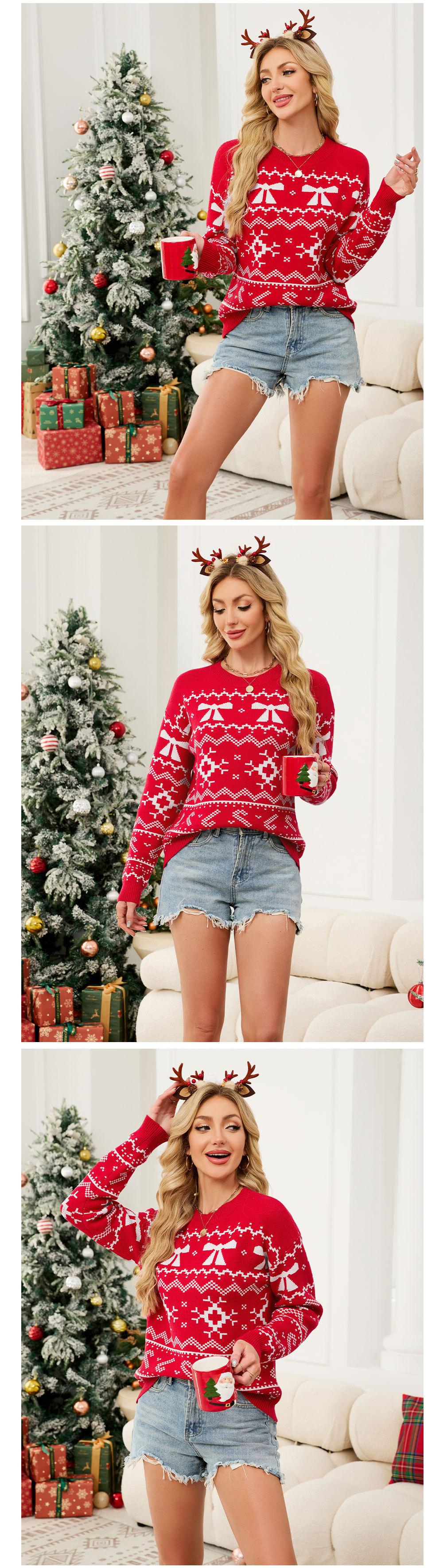 Christmas Snowflake Pattern Women's Knit Sweater Casual Pullover for Fall and Winter